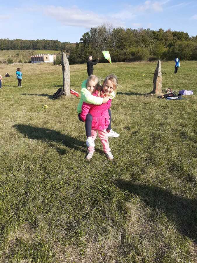 Ve čtvrtek 8. října proběhl na naší škole sportovně branný den. Po vyhlášení poplachu a rychlém opuštění školy jsme se vydali do přírody. Cestou jsme si všímali dopravních značek a povídali jsme si o bezpečnosti na ulicích. Také pobyt na místě, kde jsou umístěny Menhiry byl úžasný. Proběhli jsme se, zasportovali si a dokonce jsme využili podzimního větříku a pouštěli jsme draka.