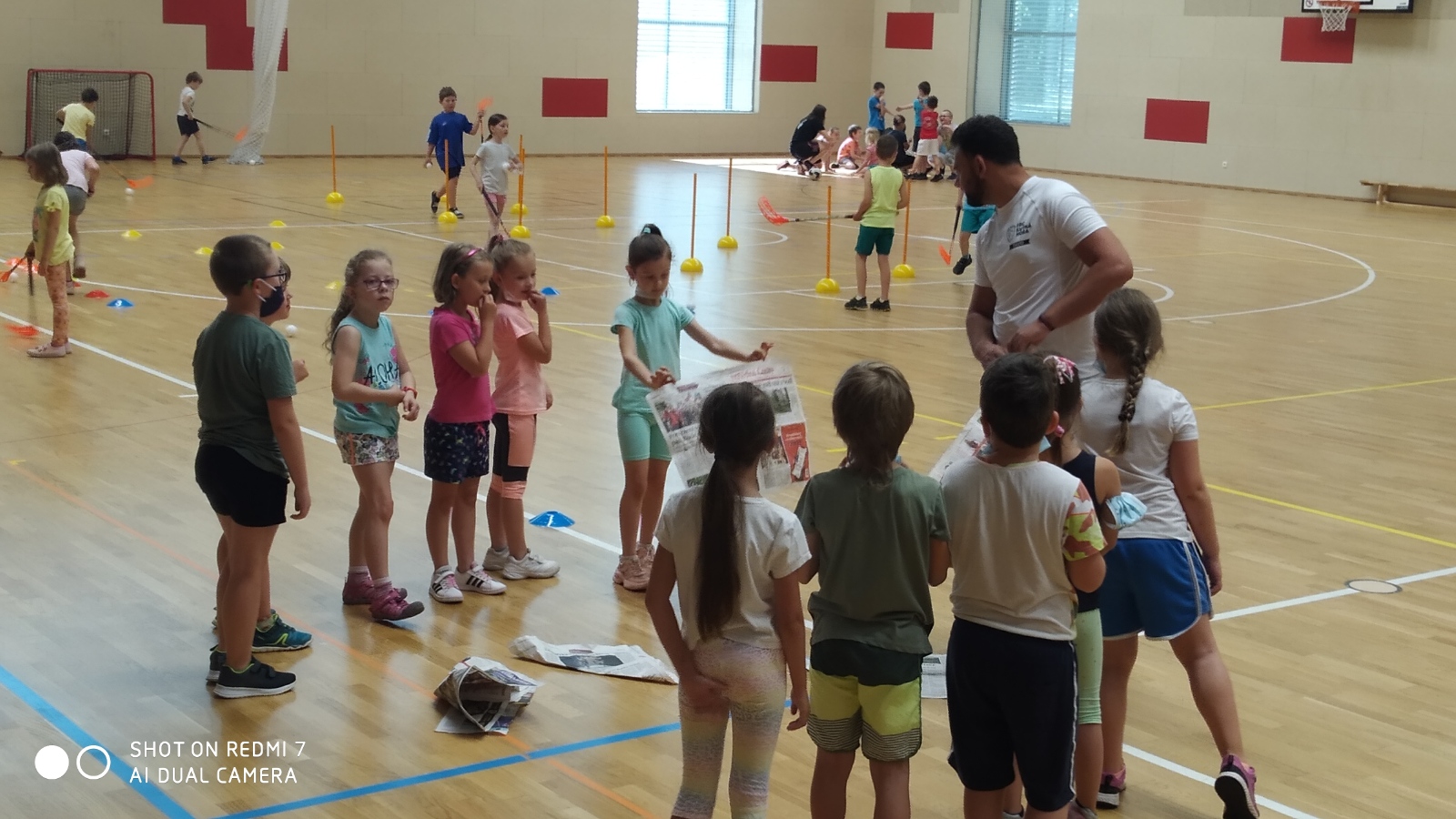 Ve čtvrtek 17. 6. jsme si pěkně zasportovali. Pro žáky prvních ročníků byl zorganizován nábor do florbalového a fotbalového oddílu. Vyzkoušeli jsme si oba tyto sporty a jediné, co nám trochu vadilo, bylo příliš horké počasí. Děkujeme.