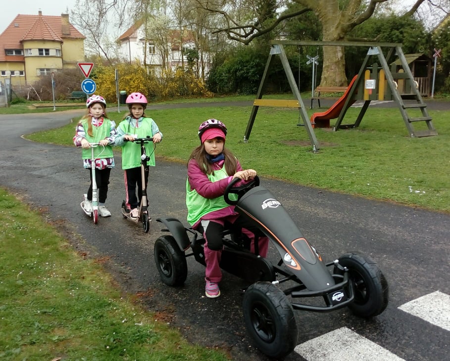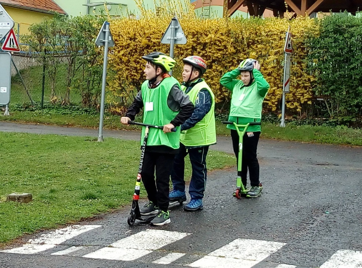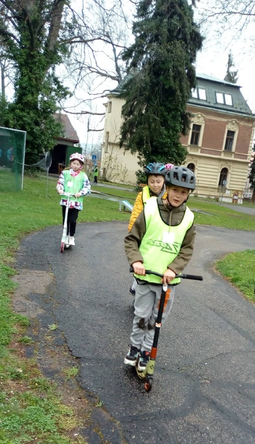 24. dubna se děti ze 4.A společně se svými kamarády ze 4.B a 4.C vypravily na dopravní hřiště Dominik v Kutné Hoře. Ve skupinách se postupně prostřídaly na třech stanovištích. Na dopravním hříšti si vyzkoušely jízdu na koloběžkách a motokárách podle řádných pravidel, vyluštily dopravní kvíz a zasoutěžily si v tělocvičně na "opičí dráze". Přestože mělo sluníčko své paprsky schované někde za mraky a občas nám seslalo na cyklistické přilby dešťové kapičky, děti si den užily.
