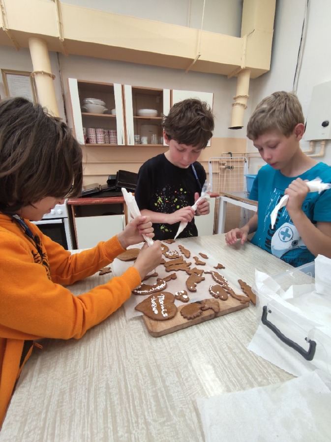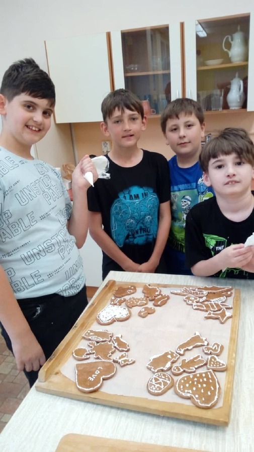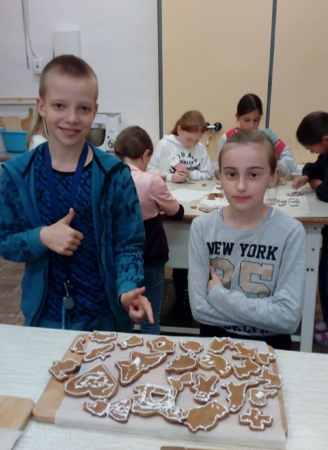 Ve vlastivědě jsme se učili o středověkých řemeslnících, kteří se sdružovali v cechy, a tak jsme si byli v naší školní kuchyni vyzkoušet perníkářské umění. Naši zruční perníkáři sázeli na plechy nejen stylová srdíčka, ale i koníky, zvířátka, domečky, květy... - a věřte, že to nebylo jen dobré, ale i krásně voňavé! :)