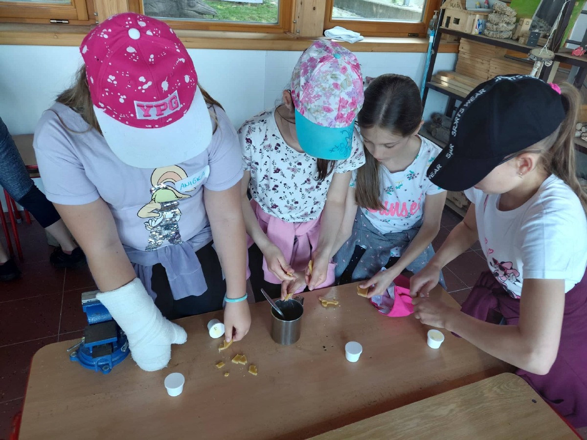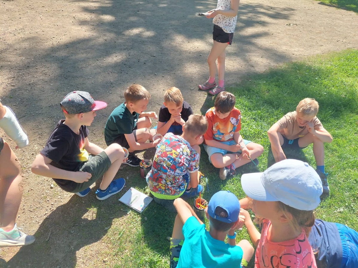 Dnešní den byl ve znamení rostlinek a drobných živočichů. Na louce jsme si vytvářeli minizahrádky a zjišťovali jsme, jaké "poklady" v nich rostou ( jetel luční, plazivý, kontryhel lékařský, rozrazil rezekvítek...), se síťkou jsme lovili létající i lezoucí obyvatele louky a pokoušeli jsme se určit jejich druh (nejvíc nás bavila ruměnice červená :), porovnali jsme si své úlovky a pak je vraceli do přírody. Vyrobili jsme si malé voňavé překvapení, napsali jsme pozdravy domů, nakoupili jsme si v obchůdku ParaZoo dárečky. Navečer jsme si zahráli míčové hry ve zdejším krásném rozlehlém parku a ještě jsme si před večerkou stačili zazpívat karaoke.