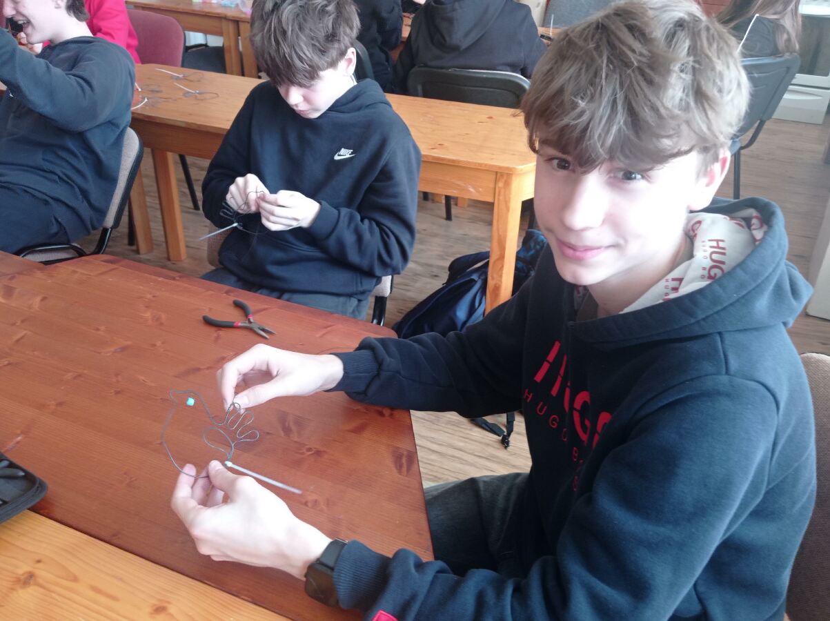 Svou zručnost a trpělivost si vyzkoušeli osmáci při tvoření z drátků. Zprvu to vypadalo, že se nám spíš zamotají ruce, ale po chvíli už začali vznikat krásní drátkovaní ptáčci... Teď už jen aby přišlo jaro!![]()