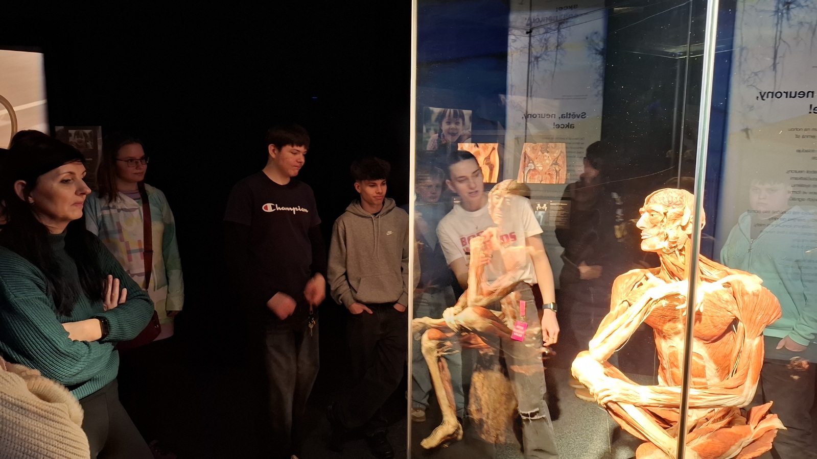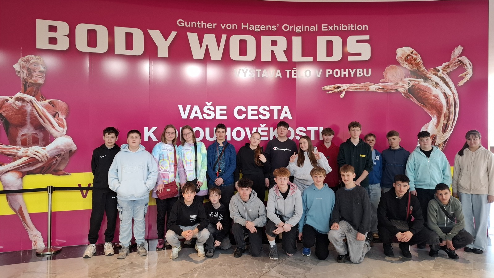 Krátce před jarními prázdninami navštívili žáci 8. tříd unikátní výstavu BODY WORLDS v Praze. Tato světově známá expozice nabízí fascinující pohled do lidského těla prostřednictvím skutečných lidských exponátů upravených metodou plastinace. Žáci tak měli možnost poznat stavbu i fungování lidského organismu zcela jiným, velmi názorným způsobem.