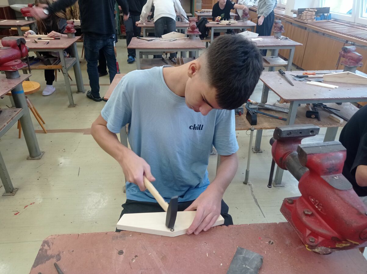 Žáci 8.B ještě před Vánoci navštívili školní dílny a pustili se do práce se dřevem. Jednotlivé komponenty museli začistit. Potom přišlo na řadu seskládání a smontování všech dílů dohromady. Děti přitloukaly lepily, měřily, vrtaly... Nakonec se všem podařil výsledný dřevěný věšák, který možná udělal velkou radost i pod vánočním stromečkem.![]()