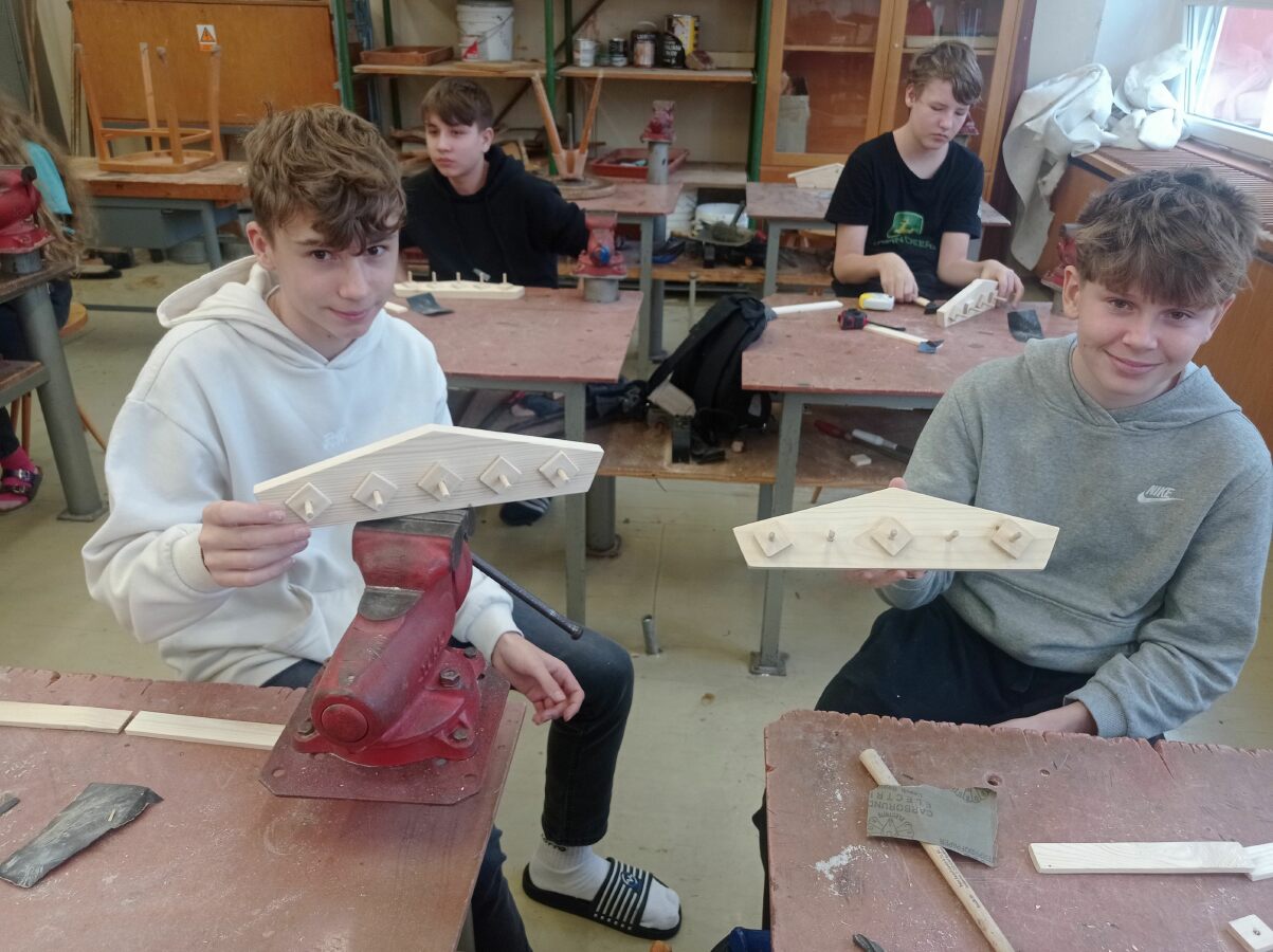 Osmáci si vyrobili dřevěný věšák