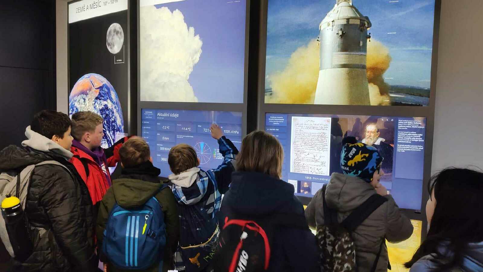 Nejvíce si ale děti užily program v digitálním sále, kde na 12 metrové polokulové ploše nad hlavou zhlédly film o vesmíru, galaxiích, Slunci, planetách, měsících, hvězdách, souhvězdích, kometách, mezinárodní vesmírné stanici ISS...