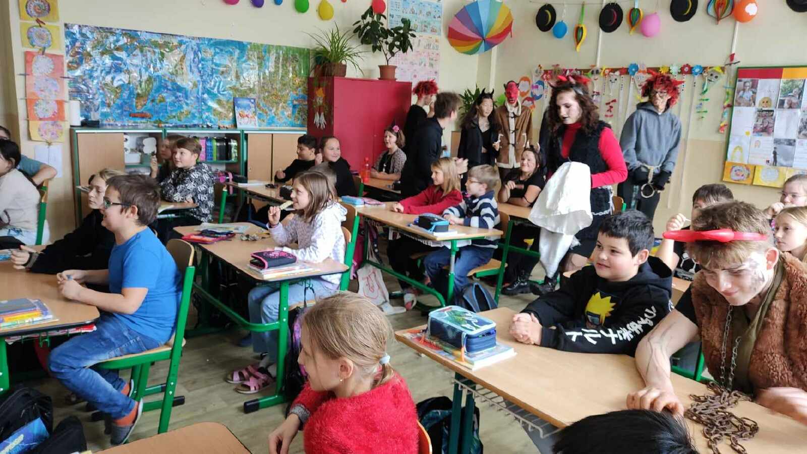 Také naši třídu poctila svou přízní nebesko- pekelná návštěva. Přinesli si s sebou knihu hříchů i čokoládové figurky. Děti jim zazpívaly koledu a slíbily, že budou ještě hodnější... :)