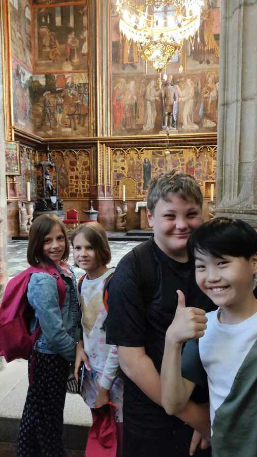 Prohlídku Hradu jsme započali v katedrále sv. Víta, Václava a Vojtěcha, před kaplí sv. Václava jsme si připomněli jeho příběh, ukázali jsme si, kde jsou uloženy korunovační klenoty.