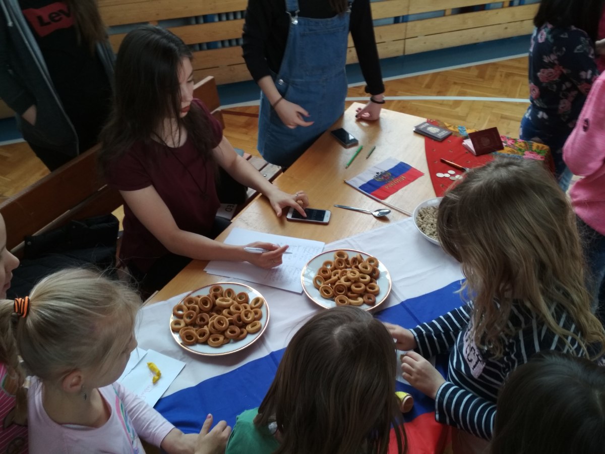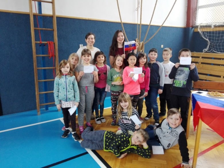I třída 2.A se mohla podívat do tělocvičny ve středu, kde probíhala Global Village našich stážistů z projektu Edison. Každý si anglicky poprosil o brazilskou sladkost, mohli jsme ochutnat jordánský "POPCORN", slečna z Gruzie nám ukázala jejich abecedu a každému napsala jeho jméno na památku a v Rusku, jsme skládali matriošky na čas. Někteří odvážlivci i ochutnali pálivé nudle z Indonésie a zkusili si napsat čísnký znak inkoustem a speciálním štětcem.