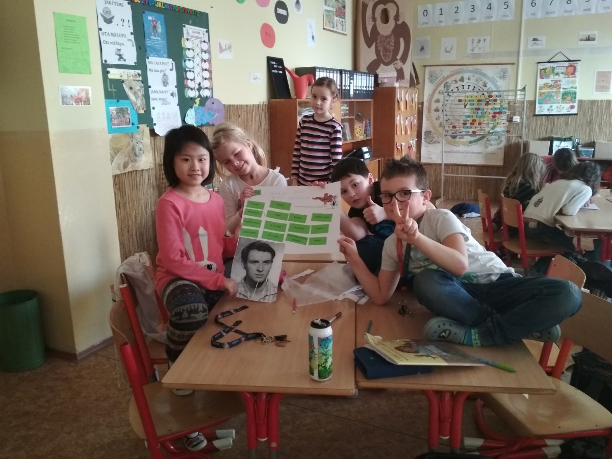 16. ledna jsme si s žáky připomněli 50 let od upálení Jana Palacha. Napřed jsme si popovídali o tom, kdo Jan Palach vůbec byl. Vysvětlili jsme si, co to byla okupace. Musím žáky pochválit do práce se ponořili a vytvořili nádhernou prezentaci o životě Jana Palacha, která nám teď zdobí chodbu.