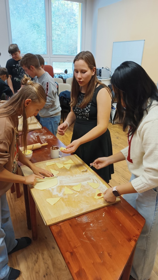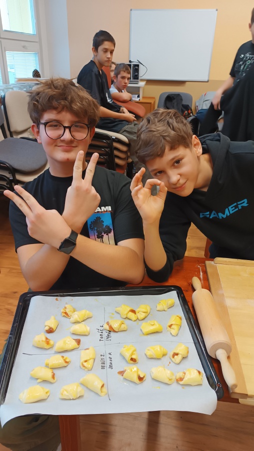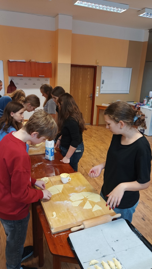 Po odchodu dětí z MŠ si žáci 8.A upekli tradiční svatomartinské rohlíčky, na kterých si společně pochutnali. Vítání sv. Martina bylo v duchu tradic a přátelství.