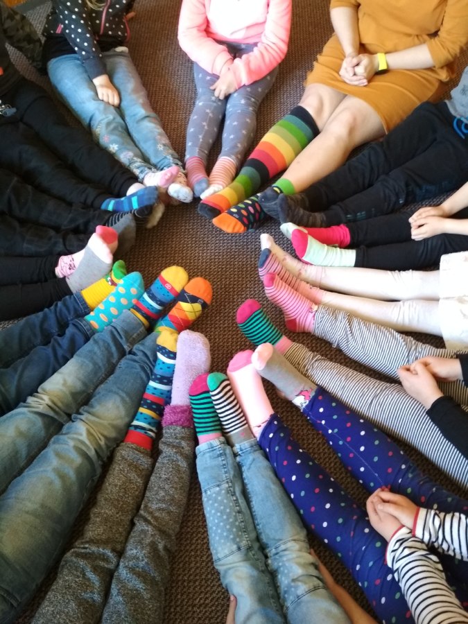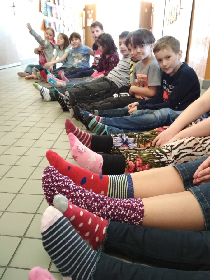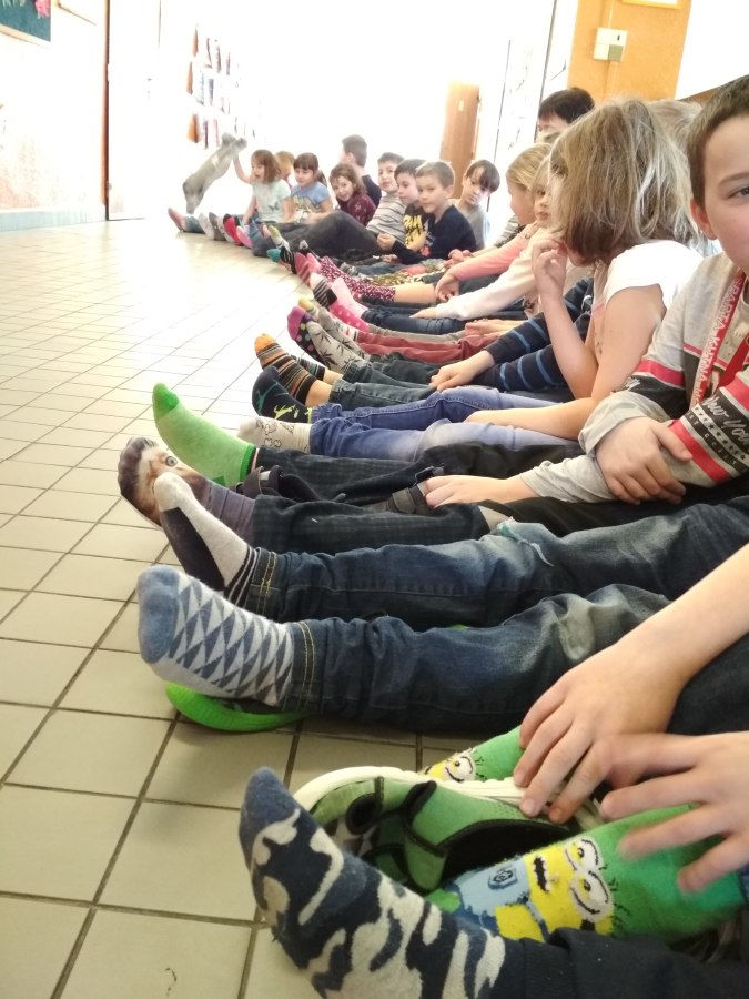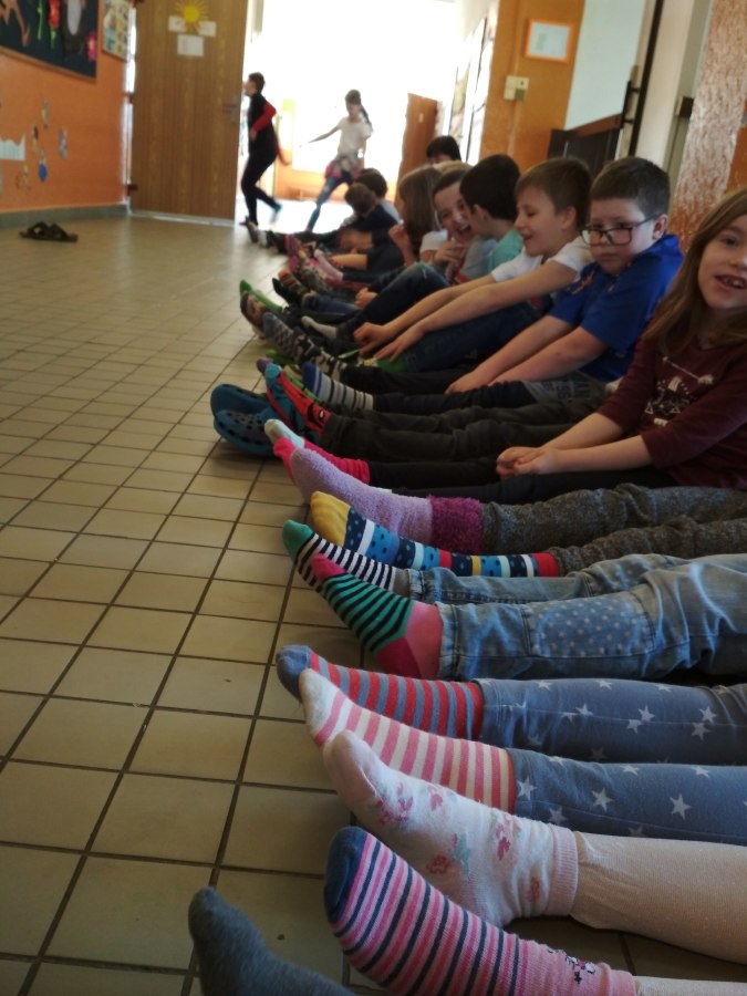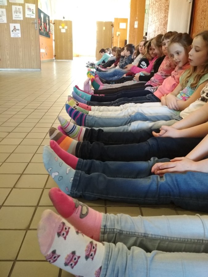 Naši druháčci se zúčastnili "ponožkového" dne. Popovídali jsme si o Downově syndromu a ukázali si pár videí. Vytvořili si barevné ponožky na nástěnku na připomínku ponožkového dne a 2.B si odnášela králíčky z ponožek. Tento den jsme si moc užili, byla to zábava.