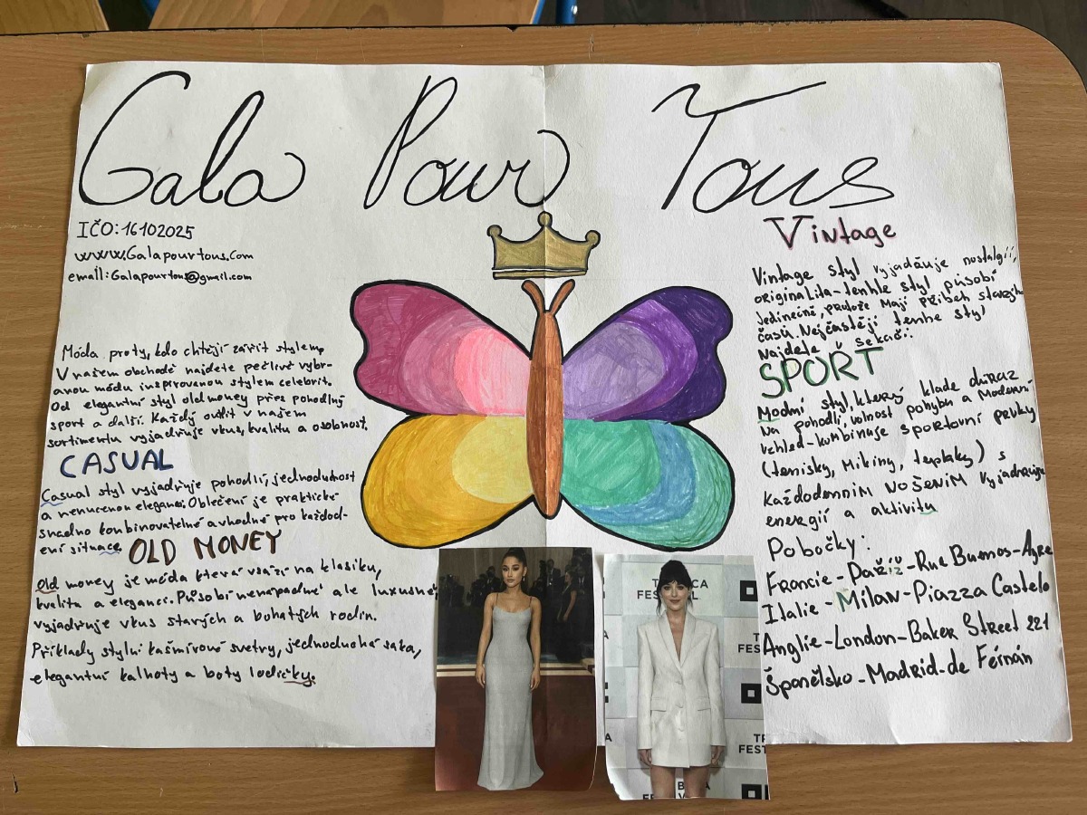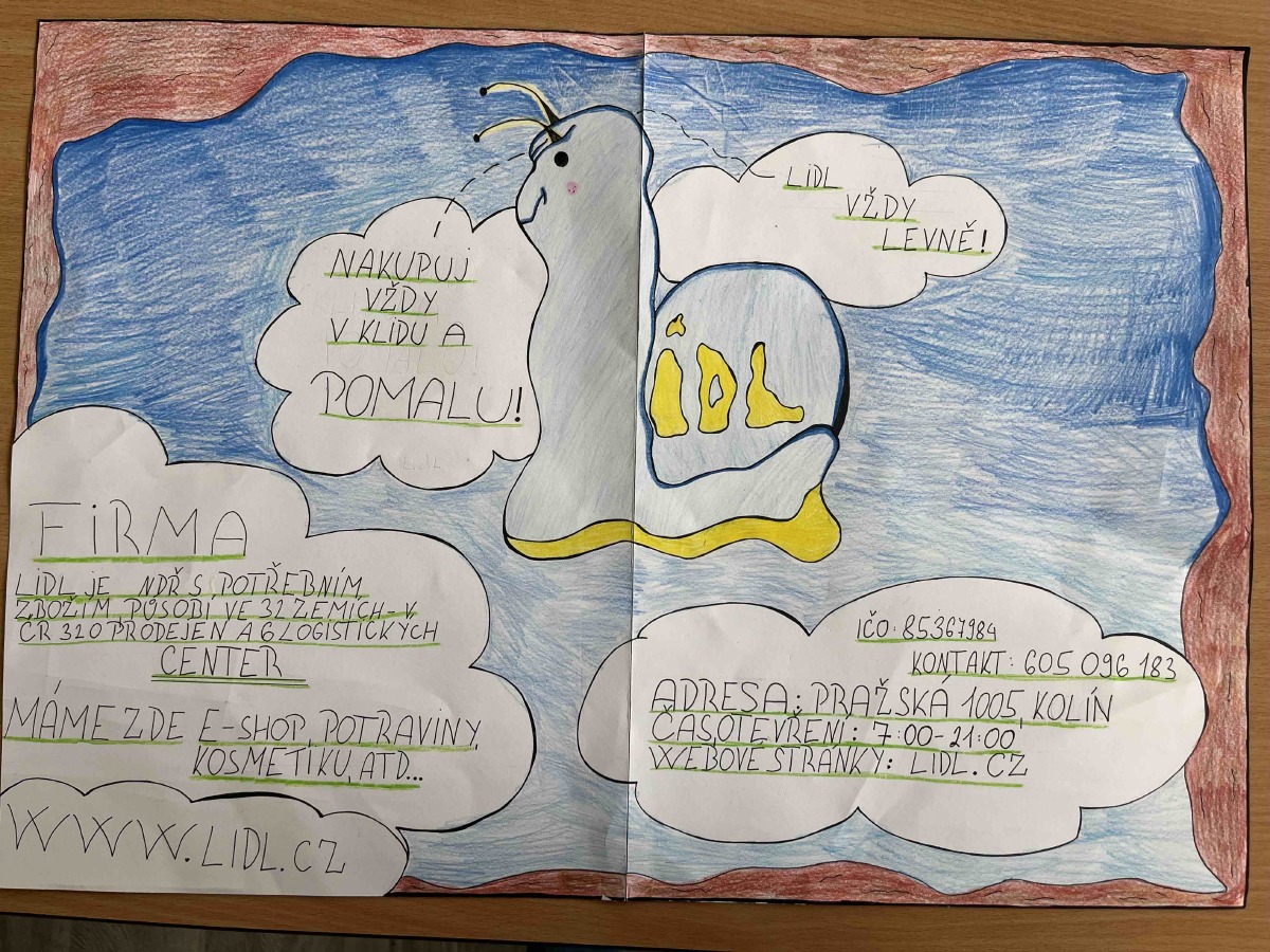 V hodinách pracovních činností si žáci 9.A vyzkoušeli roli podnikatelů. Jejich úkolem bylo vytvořit fiktivní firmu nebo podnik. Každá skupina si vymyslela název, logo i nabídku produktů či služeb. Vznikly firmy z různých oblastí – od módy, kavárny až k cestování.