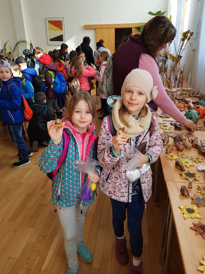 Druhé třídy dnes navštívily velikonoční výstavu v Domově Barbora.
