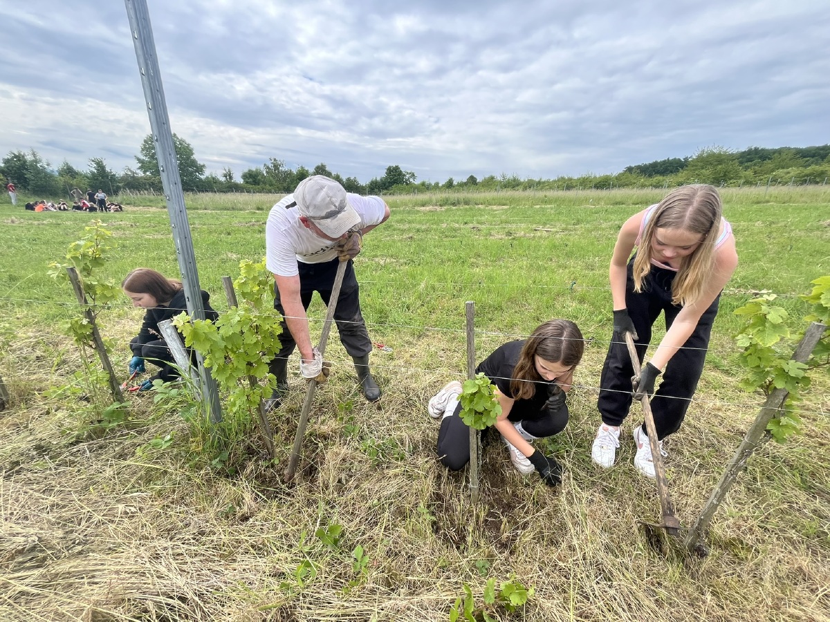 V pondělí 2. června oslavily třídy 8.B a 8.C Den dětí netradičně – návštěvou vinice. Čekal je interaktivní program rozdělený do dvou částí. V té první se žáci zapojili do her a aktivit spojených s přírodou, vinařstvím a jeho historií. Dozvěděli se zajímavosti o pěstování révy a vývoji vinařství v našem kraji. Druhá část programu byla praktická – žáci si sami vyzkoušeli práci na vinici. Pod vedením odborníků zasadili sazenice odrůdy Rulandské modré. Program byl zábavný i poučný a Den dětí si všichni užili naplno.