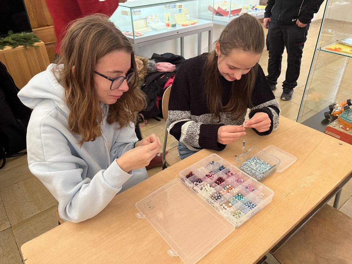 Na závěr programu si žáci vyrobili z korálků vánoční ozdobu.