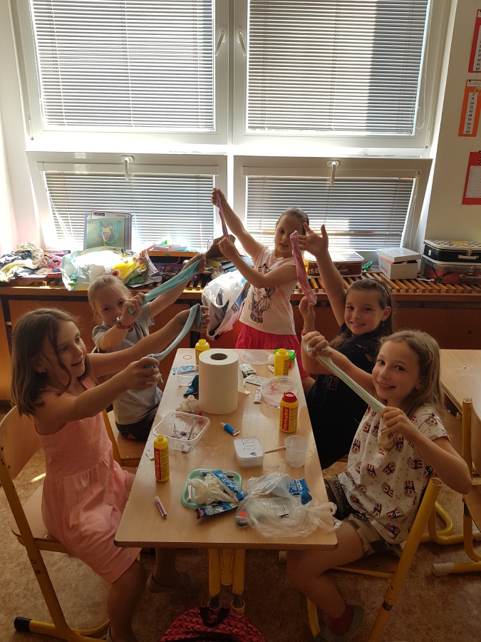 V červnu jsme se pilně učili a sbírali poslední jedničky před vysvědčením. Ale kromě toho jsme stihli i spoustu dalších zajímavých a příjemných akcí. Například jsme si vyzkoušeli výrobu slizu. Mysleli jsme na tatínky a vyrobili krásná přáníčka ke Dni otců. Pilní čtenáři dostali za celoroční četbu hodnotné odměny. A nakonec po vší té práci čekala sladká zasloužená odměna úplně na všechny v podobě vynikající zmrzky.