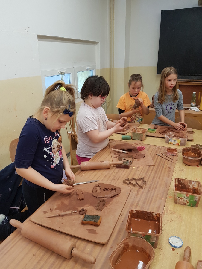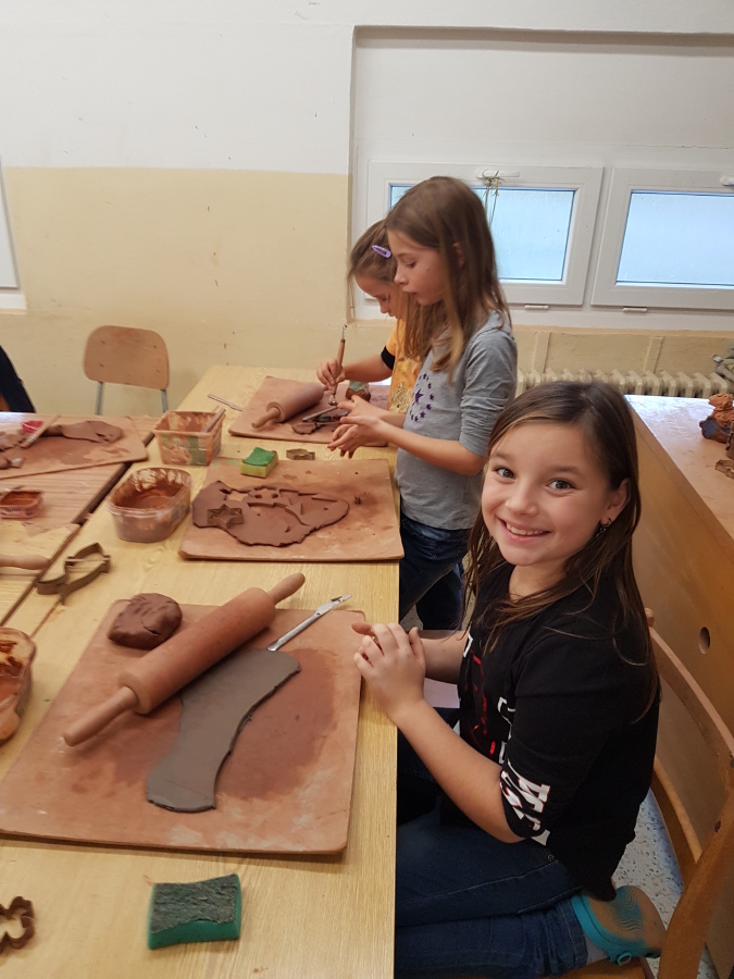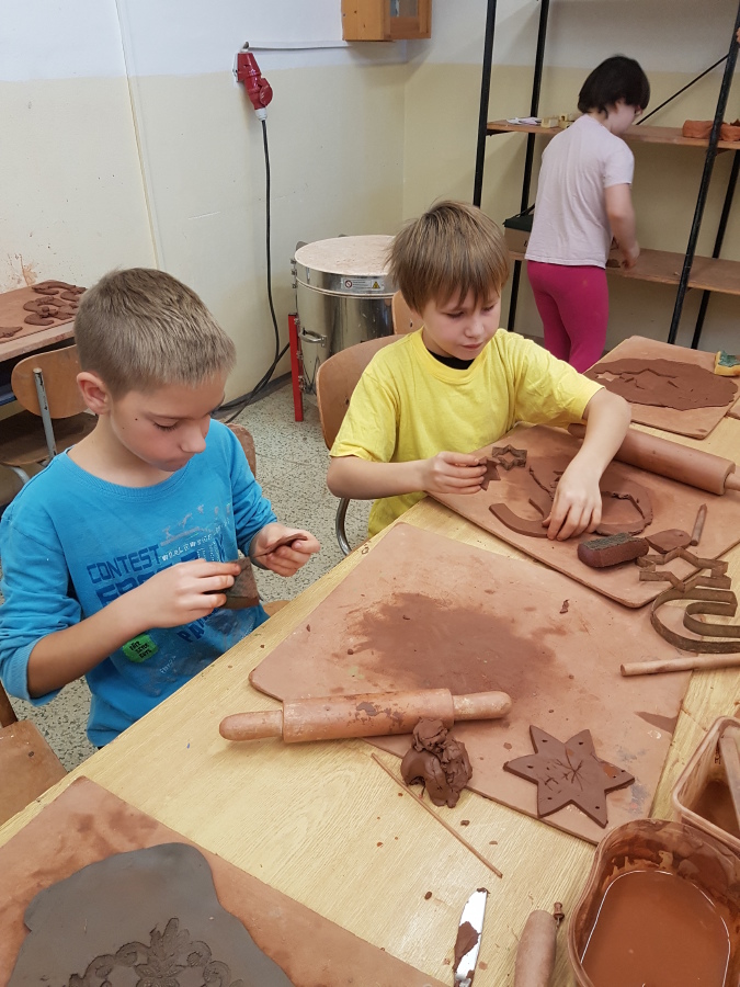 Třeťáčci se začaly chystat na vánoční jarmark ...protože ...než jim překrásné keramické podkovičky pro štěstí a další zdařilé výrobky z keramické dílny zaschnou ...než se vypálí ...než se dozdobí ... Věříme, že na vánočním jarmarku toho bude dosti, čím se kochat a co nakupovat:)
