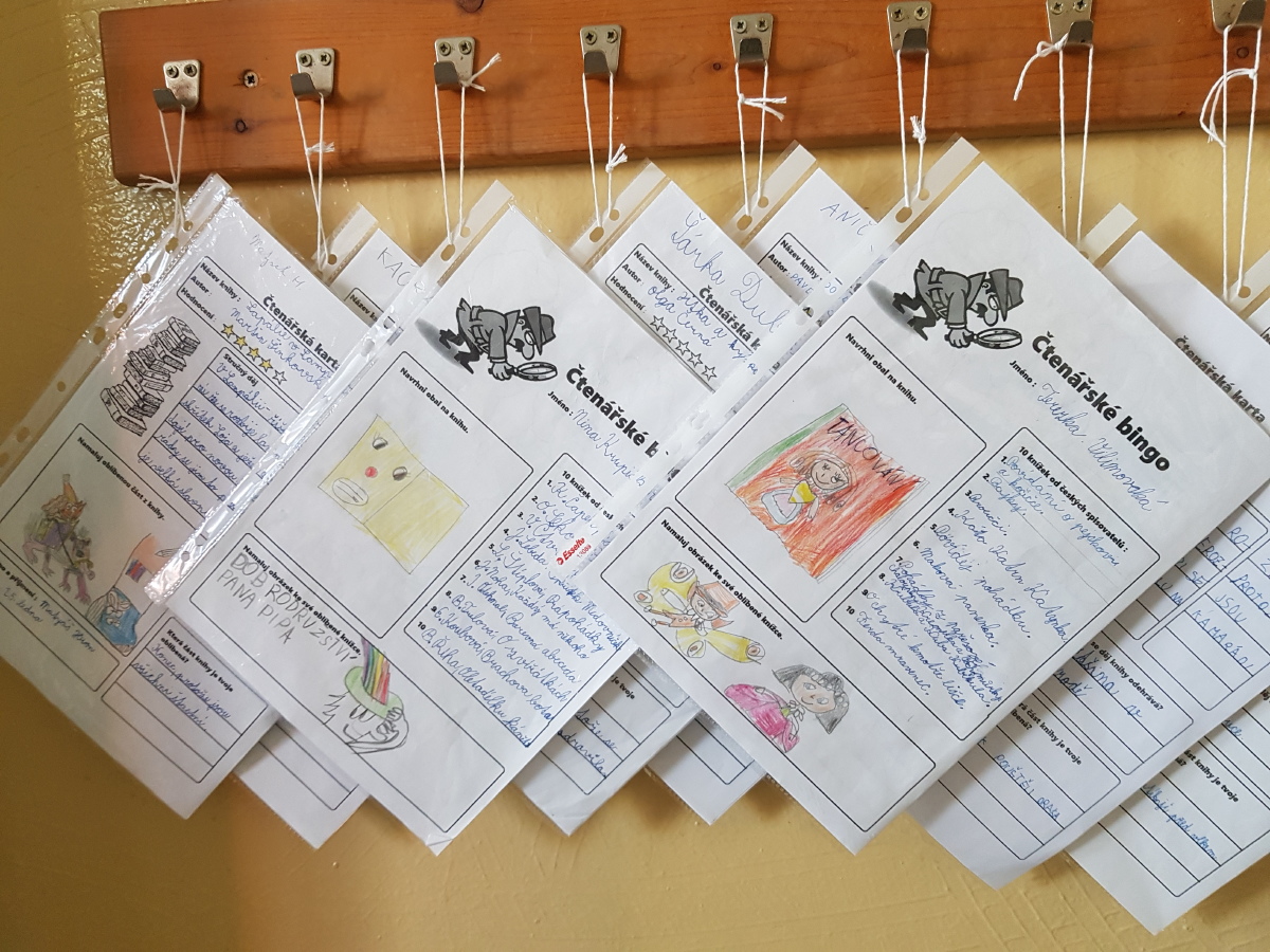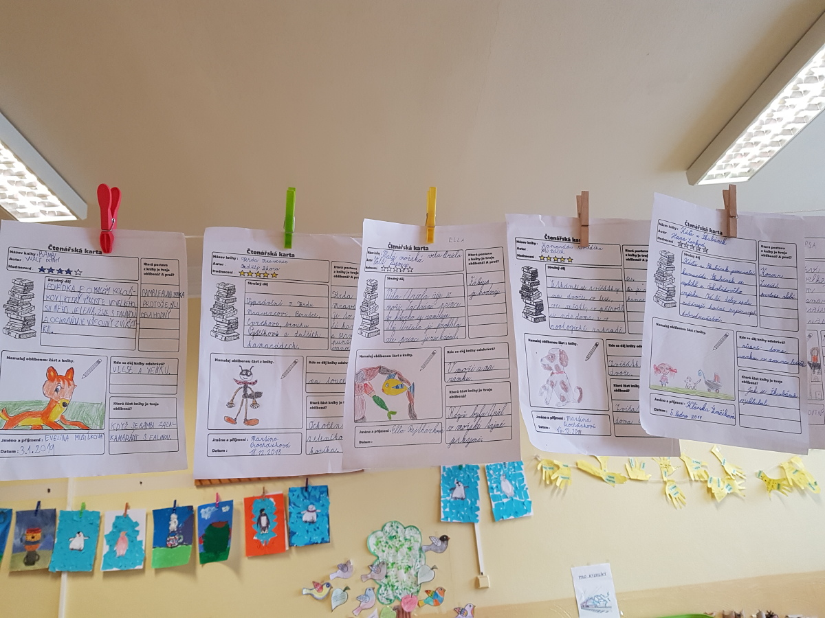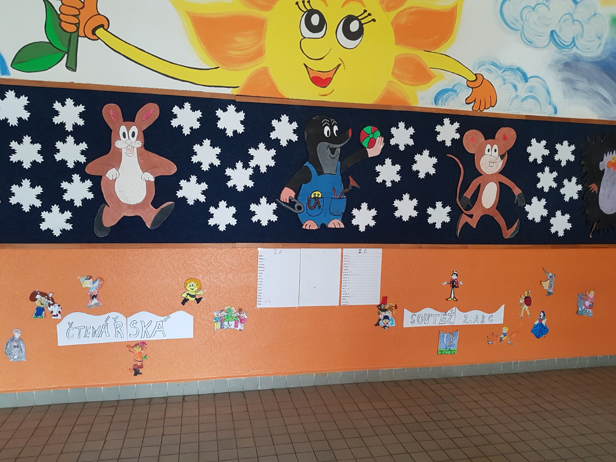 V 2. A, 2. B a 2. C je již v plném běhu nová ČTENÁŘSKÁ SOUTĚŽ! Snažíme se tak motivovat děti, aby doma více četly a zlepšovaly své čtenářské dovednosti. Pravidla soutěže jsou jednoduchá. Za každou přečtenou knihu dostane pilný žáček "čtenářskou kartu", do které napíše autora, název a obsah knihy. Vedle toho vyplňují děti "čtenářské BINGO", ve kterém mají možnost si procvičit své literární vědomosti. Děti čtenářské karty zdobí i vlastními ilustracemi:) Na konci školního roku nás čeká vyhodnocení, nejlepší čtenáři dostanou odměnu v podobě krásné knížky. Soutěž probíhá v rámci jednotlivých tříd a dále mezi třídami navzájem. Akce se nám pěkně rozjíždí, pohádkové postavičky na chodbě sledují, jak se nám plní tabulky razítky a naše třídy nám začínají zdobit krásně vyplněné pracovní listy od našich pilných čtenářů.