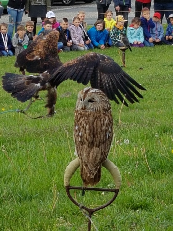 Dnes jsme si zpestřili vyučování zhlédnutím představení Seiferos - ukázky dravců. Dozvěděli jsme se spoustu zajímavých informací, sledovali dravce za lovu a při vysokém přeletu nad sídlištěm, zblízka si prohlédli např. sovu sněžnou, supa, orly, výra, sýčka, krahujce, nejmenšího kulíška atd. Moc jsme si to užili.
