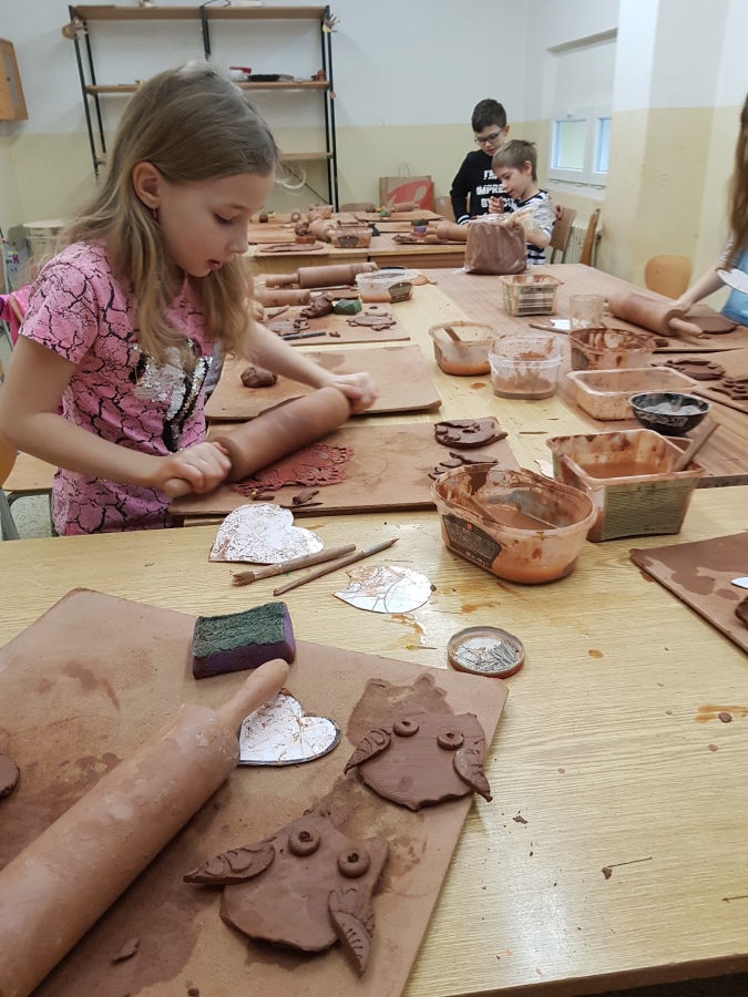 Děti z 2. A, B, C vyráběly v pondělí dárečky k zápisu pro své budoucí kamarády! Každý měl za úkol vyrobit v keramické dílně minimálně 1 sovičku jako dárek k zápisu pro budoucí prvňáčky. Děti se snažily, sovičky se jim moc povedly. Zaslouží si obrovskou pochvalu.