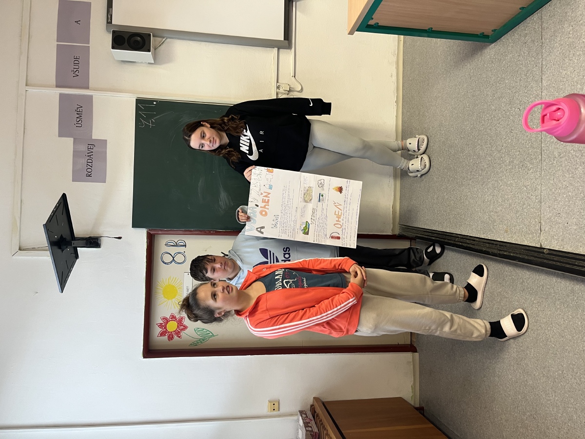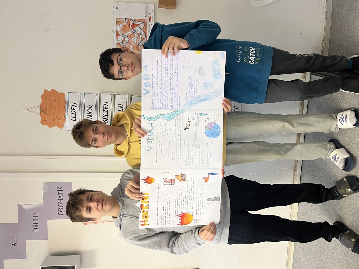 V hodinách chemie žáci 8.B vytvářeli projekt na téma: VODA, VZDUCH, HOŘENÍ.