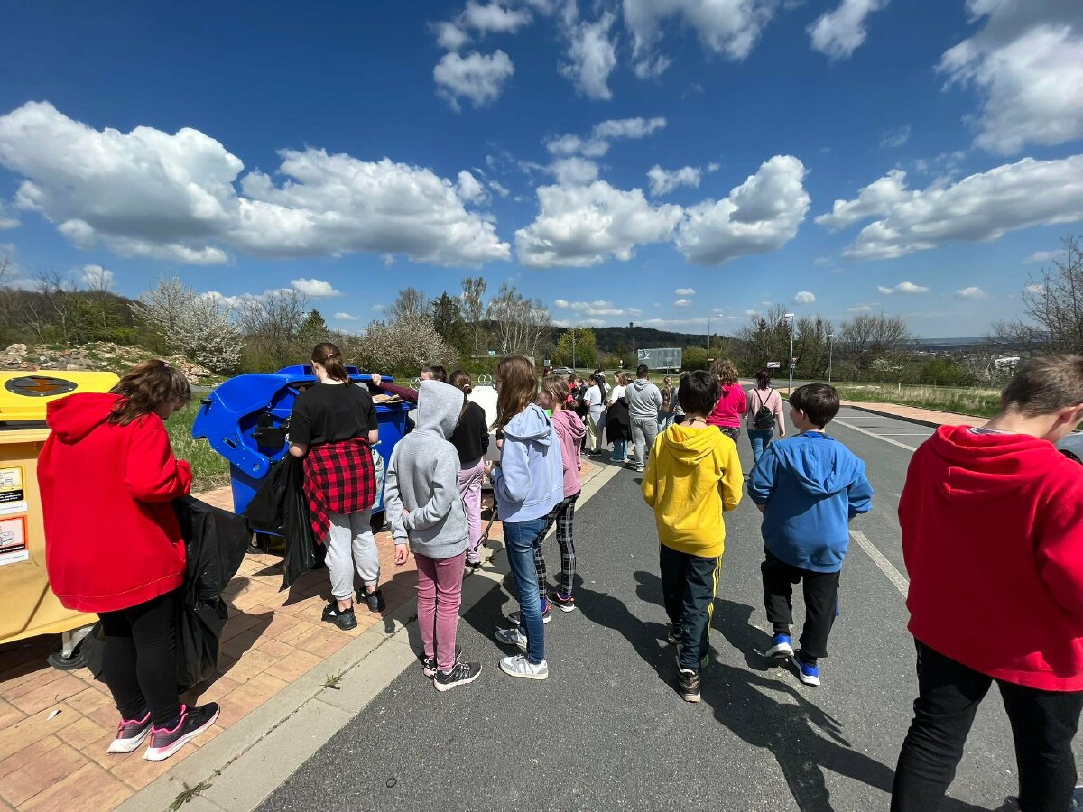 Dnes 21.4 žáci 6. B a 6. C spojili své síly a společně uklízeli vyznačenou lokalitu ve městě. Na úklid měli 2 hodiny a během této doby nasbírali velké množství odpadků. Na konci celé akce odpadky roztřídili do příslušných kontejnerů.