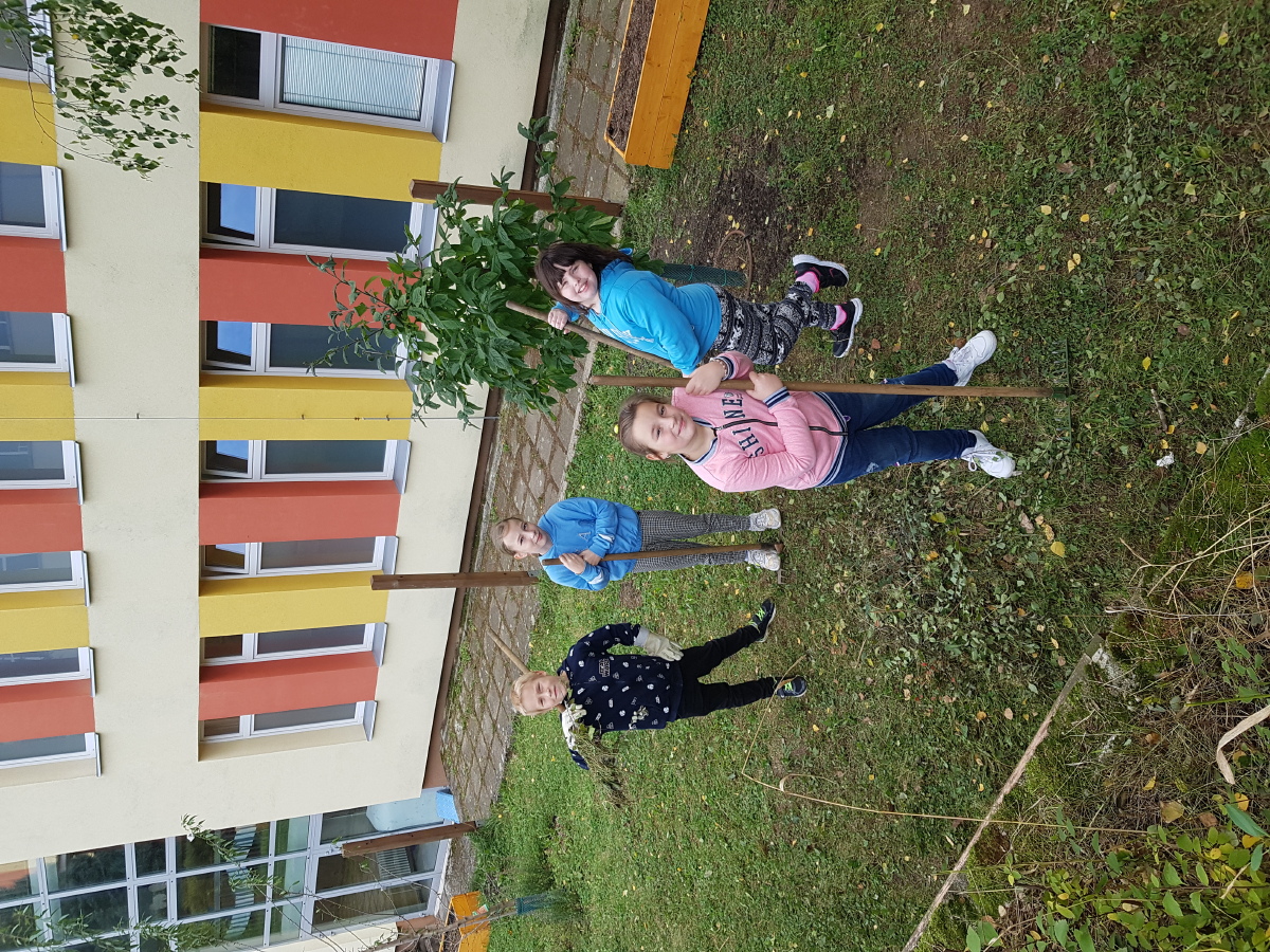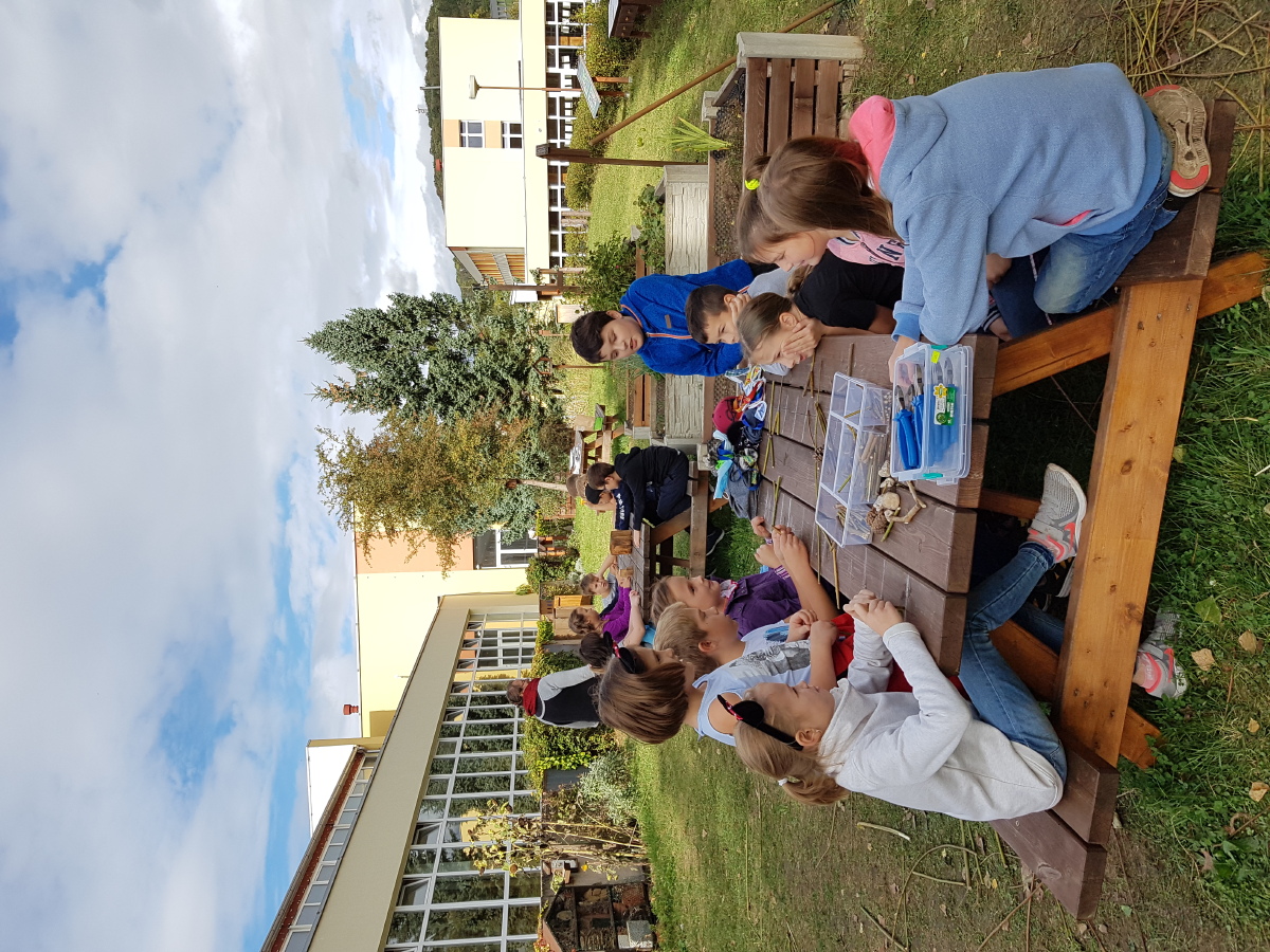 Čtvrťáci dnes pomáhali a učili se v zahradní učebně Pod Horami.