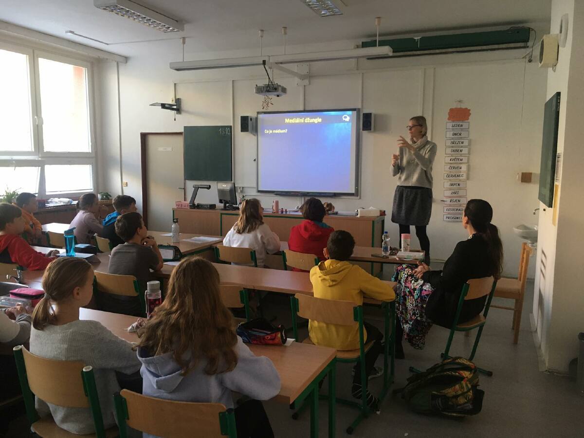 Žáci byli seznámeni a poučeni o tom, co všechno ve světě medií je, že tam mohou být dobré, ale i špatné věci.