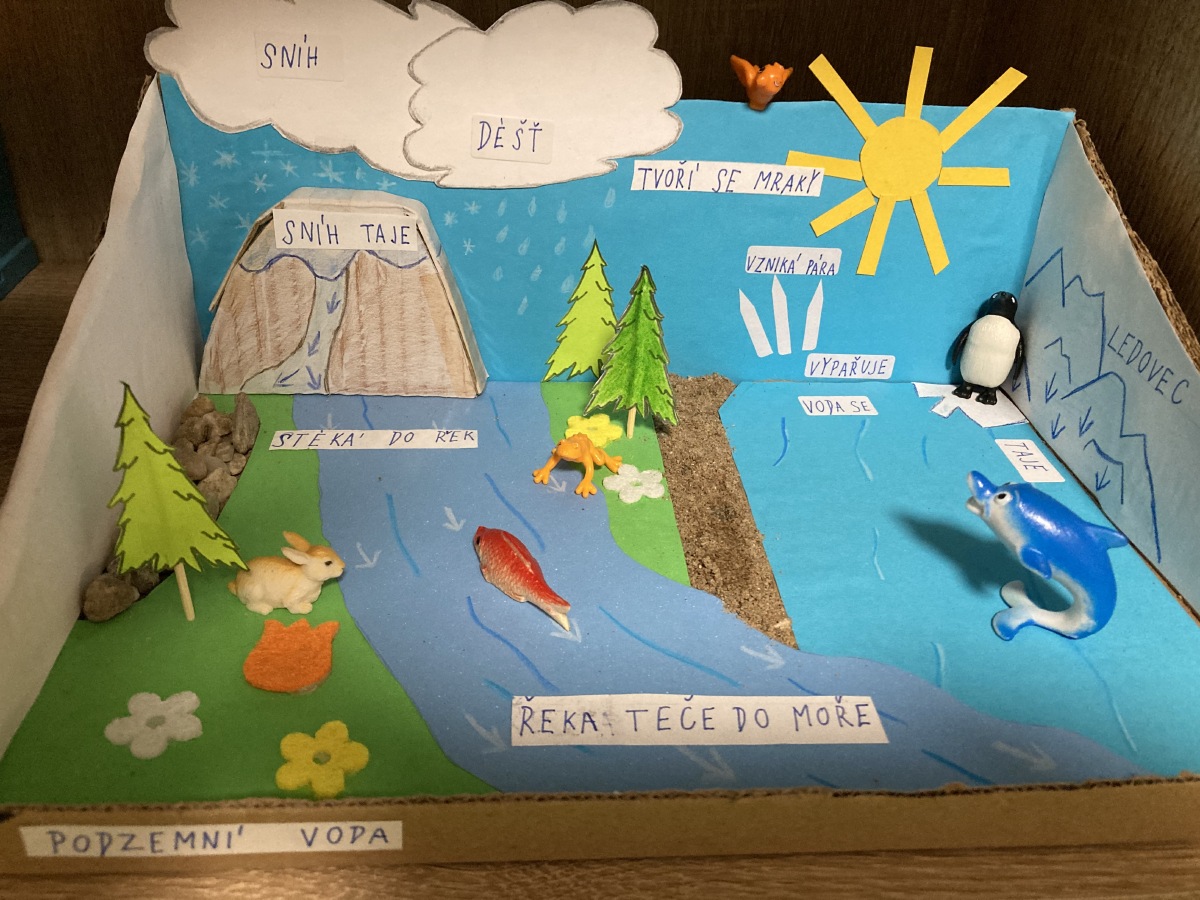 Při hodinách prvouky jsme se dozvěděli informace o koloběhu vody.