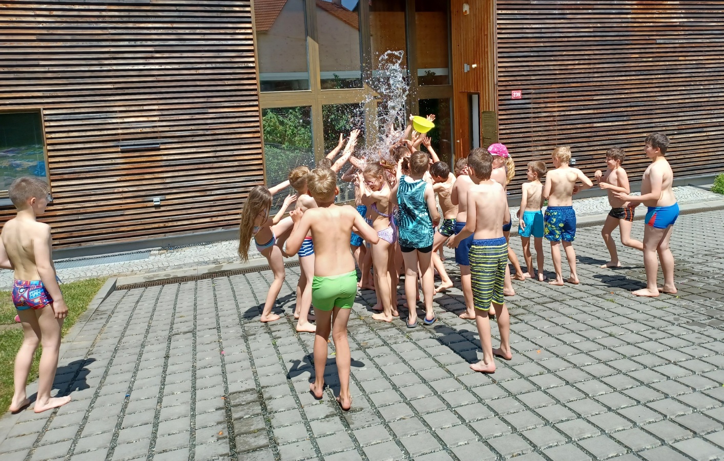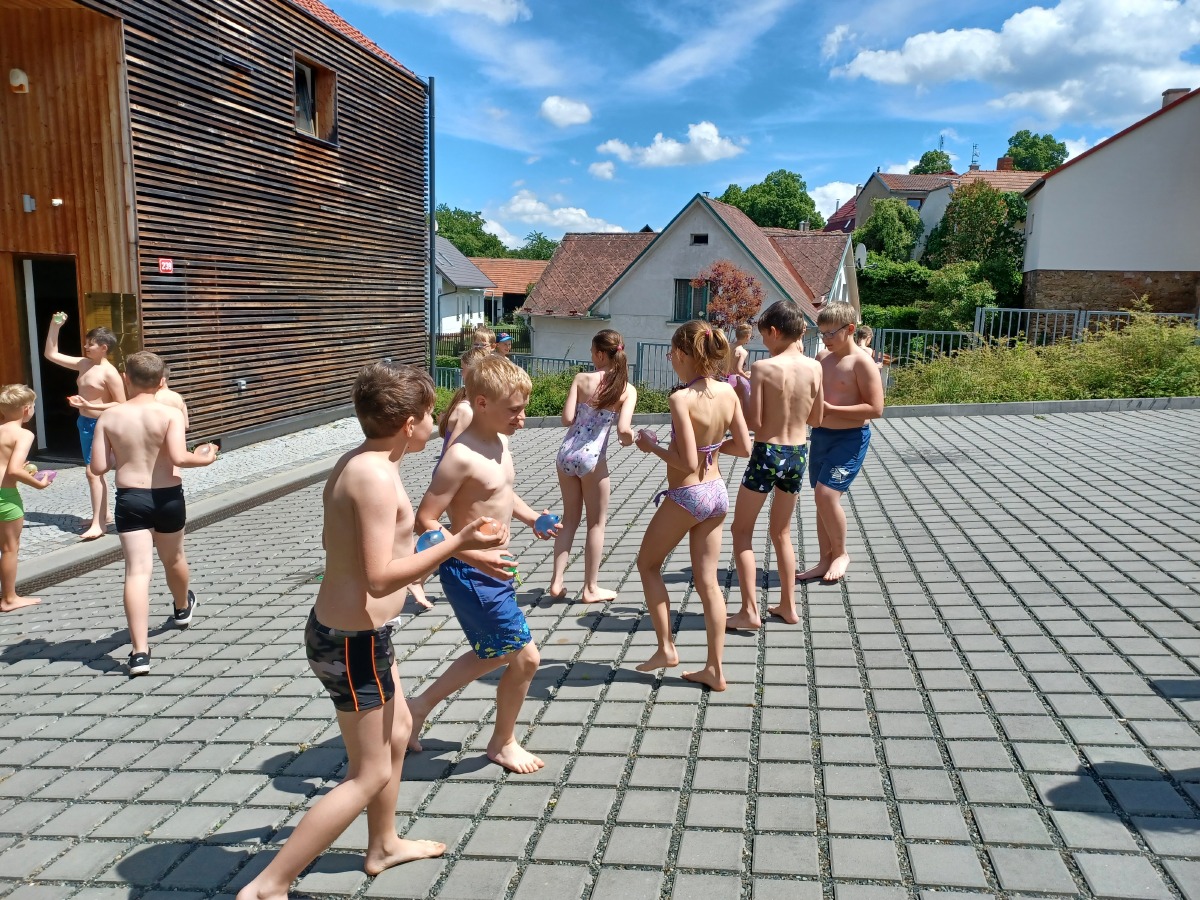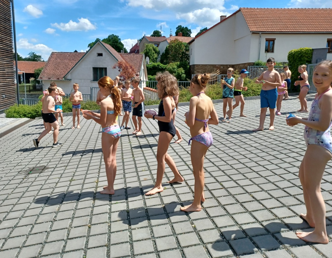 Protože nám počasí přálo, vytáhli jsme odpoledne z kufru plavky a užili si odpolední balónkovou bitvu.
