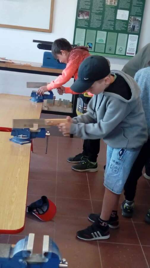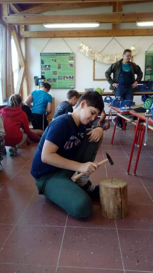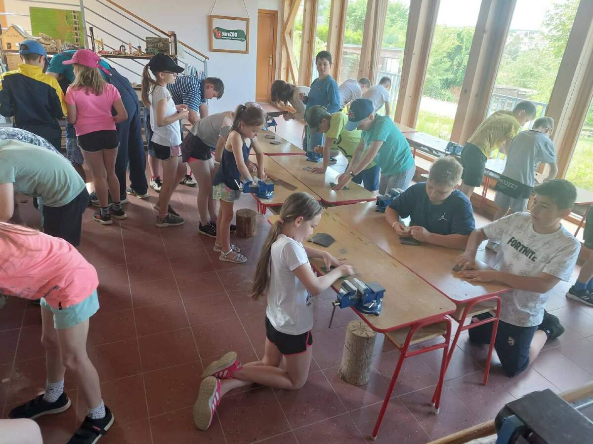 Poté jsme zavítali do dílny v Ekocentru. Děti se zde učily pracovat s různým nářadím.