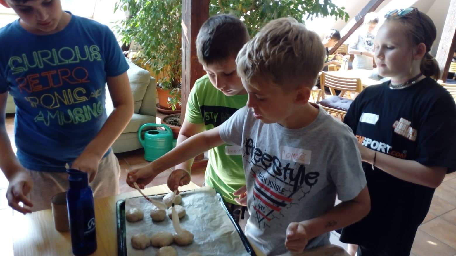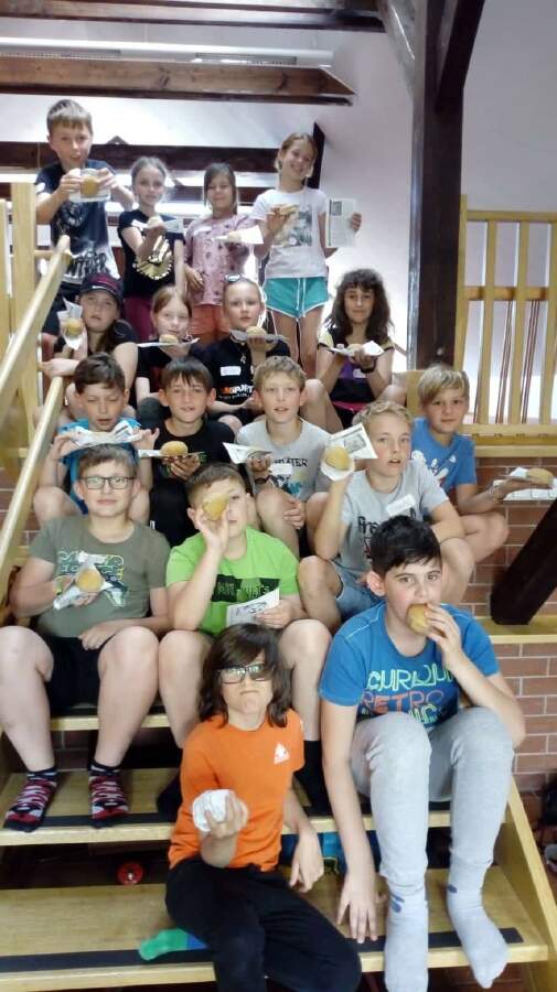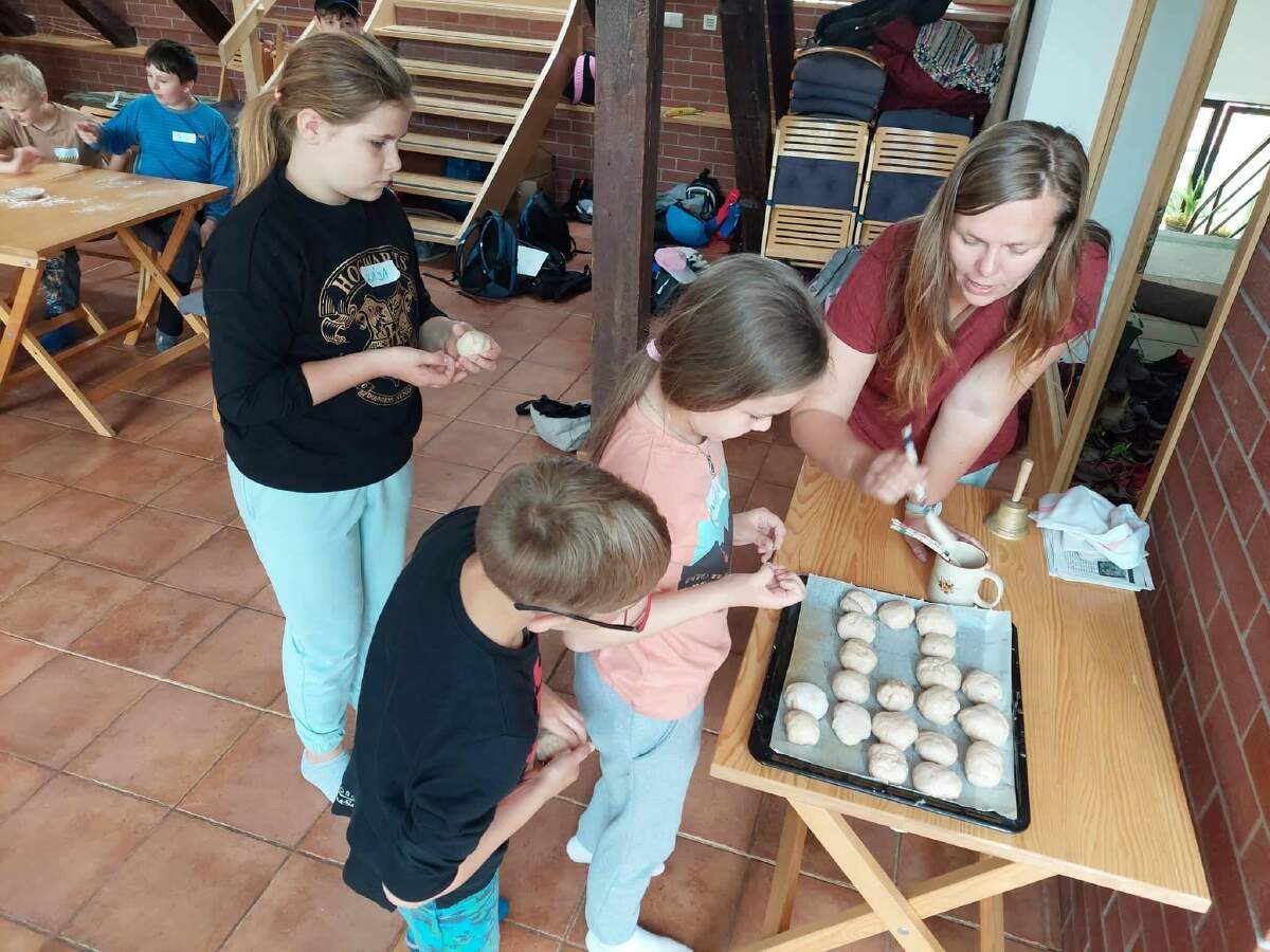 To však zdaleka nebylo vše. Vyzkoušely si, jak se zachází s cepem, vyrobily kuličky se semínky, vyplnily pracovní listy, splnily úkoly a nakonec společně zadělaly těsto na chléb. Každý si upekl bochánek a snědl ho.