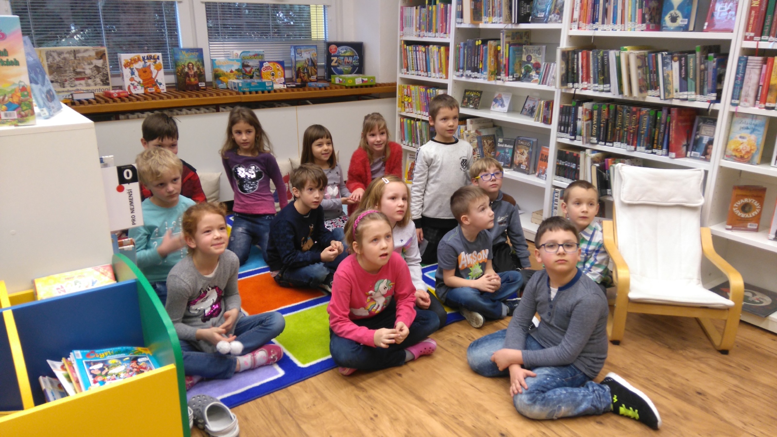 V únoru také děti navštívily pobočku knihovny v naší škole, kde tentokrát odevzdaly obrázek na téma "Čtyřlístek". S paní knihovnicí si povídaly o autorech a ilustrátorech dětských knih.
