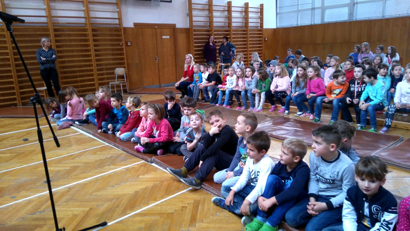 I žáčci prvních tříd se v pondělí 28.1. zúčastnili představení Vladimíra Hrona v naší škole.