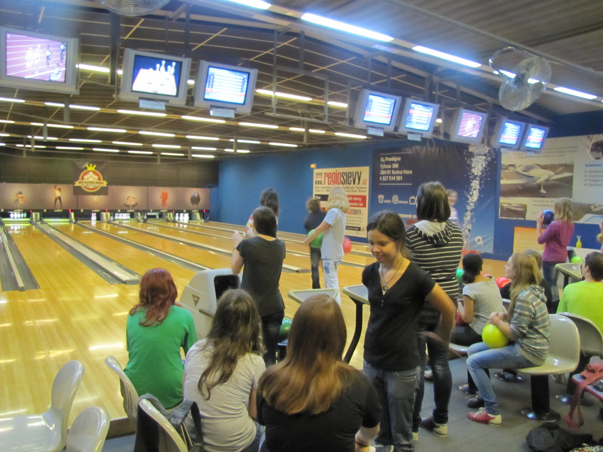 Dopoledne strávila florbalem v tělocvičně a po rychlém přesunu na místní bowling i bowlingem a poté společným obědem v italském stylu.