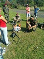 Druhou část dopoledne jsme strávili na školním hřišti, kde pro nás připravili úžasný program členové armádních záloh. Seznámili jsme se s různými druhy zbraní, které armáda používá. Na dalším stanovišti jsme stříleli ze vzduchovek, s různým úspěchem, ale všichni jsme se snažili. Neoficiální soutěž pedagogů vyhrál pan učitel Mačina. Také jsme se dozvěděli mnohé o první pomoci při zraněních a úrazech. Ocenili jsme odvahu armádního figuranta, na kterém nám pan zdravotník ukázal stabilizační polohu zraněného.