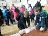 Branné cvičení: nácvik rychlé evakuace ze školy na parkoviště v ulici J. Palacha, beseda s členkami Červeného kříže, základy první pomoci, poznatky o používání požárních přístrojů, bezpečnost na veřejné komunikaci, a další a další zajímavé a potřebné informace!