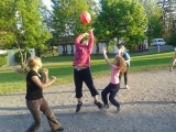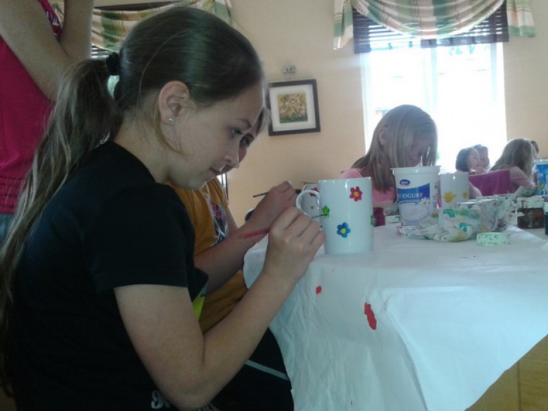 Malování na tašky a hrnečky pro maminky, sluníčko a spousta her venku, večer opékání buřtů, zpívání při kytaře a po setmění noční bojová hra a zkouška odvahy!