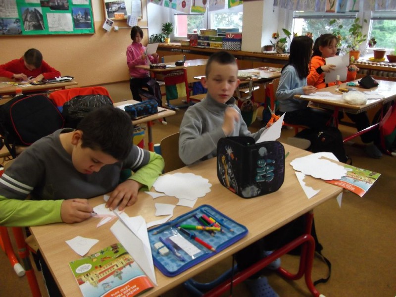 Ve středu 16.4.2014 jsme měli projekt Velikonoce. Ráno jsme vyráběli poslední velikonoční dekorace, složili maxivlaštovku plnou tajných přáníček. Další hodinu jsme si povídali o velikonočních zvycích, symbolech, historii. Na závěr byl testík znalostí ve skupinách.