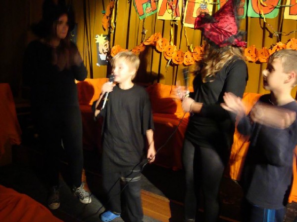 Ve školním divadle jsme měli slavnostní večeři a diskotéku. Nechybělo vyhlašování nejlepších masek a spousta her.