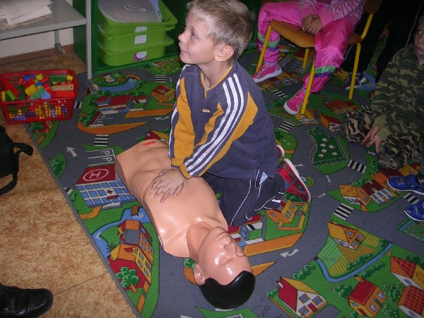 Pak následovala přednáška profesionálního zdravotníka a vyzkoušeli jsme si poskytování první pomoci na figuríně.