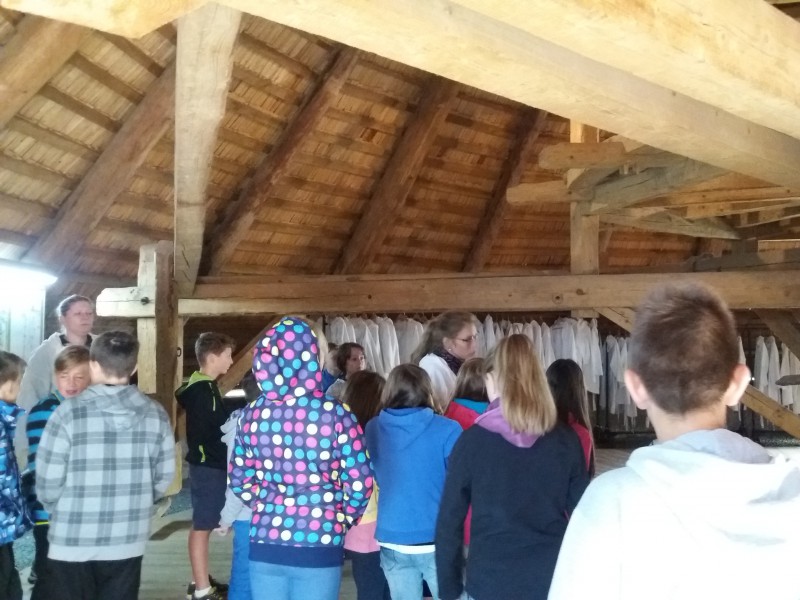 Ve čtvrtek 22.9. nás místo školních lavic čekala výprava za kutnohorskými havíři do míst, ve kterých dobývali stříbrnou rudu - do dolu Osel. Všichni jsme procházku stísněnými prostorami v podzemí zvládli, i když v některých z nás byla malá dušička, zvláště když jsme zhasli světýlka na helmách a ponořili jsme se do černočerné tmy.