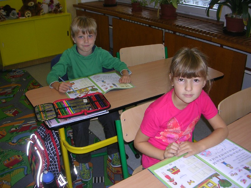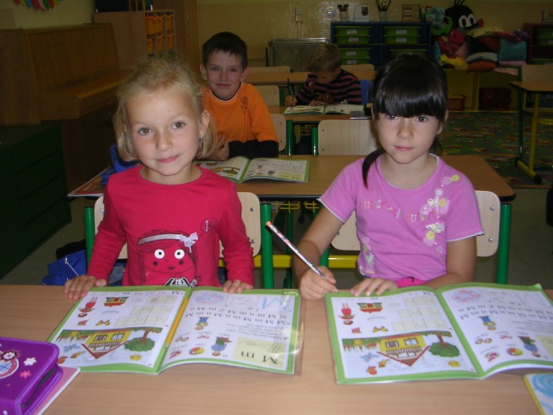 Do školy chodíme už druhý týden. Umíme krásně sedět v lavicích, víme, co máme dělat o přestávce a rádi si povídáme. Ovšem to nejdůležitější nás teprve čeká. Ale už začínáme! Počítáme do čísla 4 a už umíme první písmenka - malé m a velké M.