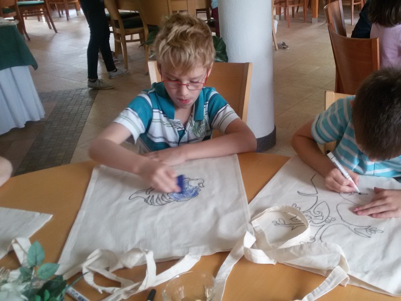 Nejprve jsme si vyrobili pro maminky překrásné tašky z přírodního materiálu a odpoledne pak hrneček.