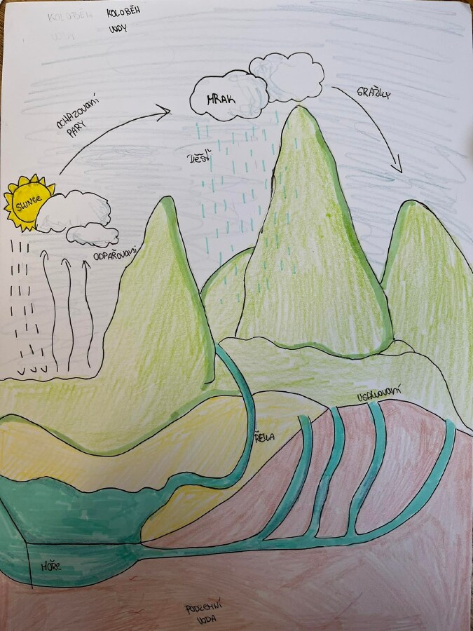 Žáci měli za úkoly ztvárnit koloběh vody. Práce se jim moc povedla. ![]()