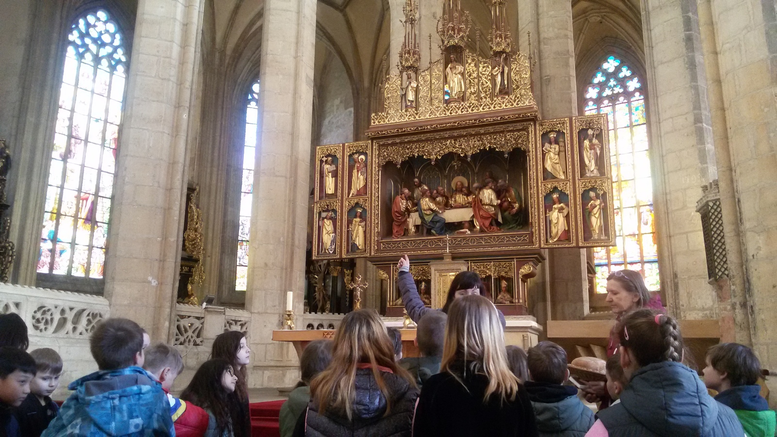 Velikonoční období nás přimělo z návštěvě chrámu sv. Barbory v našem městě, kde byl pro nás připraven velmi pěkný program s velikonoční tématikou. Na závěr dětem byl darován svěcený chléb jako symbol Velikonoc, který jsme si ve třídě hned čerstvoučký snědli. Mńam