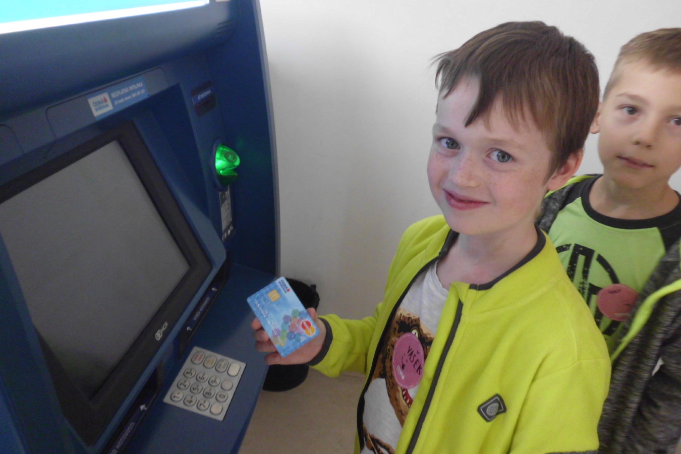Povídali jsme si o mincích a bankovkách, vysvětlily jsme si, co je to např. rozpočet. Viděli jsme "v akci" počítačky peněz. Podívali jsme se do místnosti s bezpečnostními schránkami a dokonce se spojili i s videobankéřem. Vyzkoušeli jsme si, jak se mění PIN, vybírá či vkládá hotovost do bankomatu.