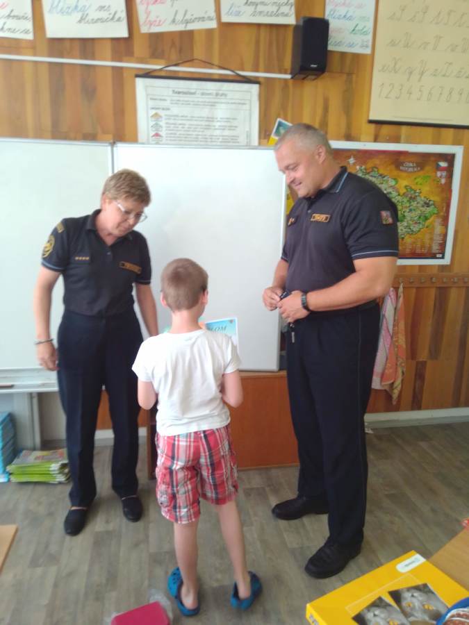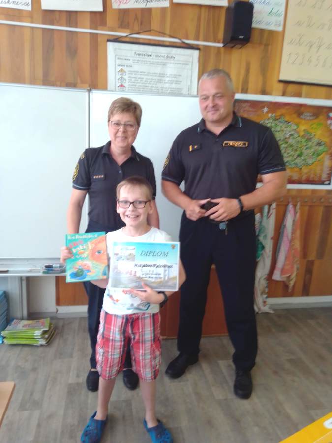 Na konci školního roku nás svou návštěvou překvapili zástupci HZS Kutná Hora. Jako každoročně jsme se zúčastnili výtvarné soutěže Hasiči očima dětí a .... obrázek Matyáše Kaiznera byl vybrán mezi výherní! Maty dostal od hasičů diplom a knížku. GRATULUJEME!!!