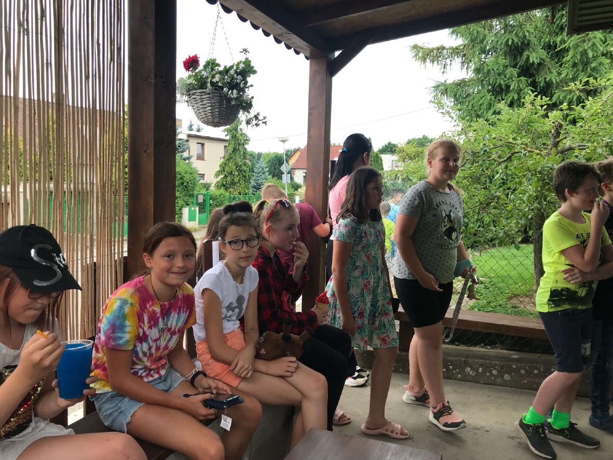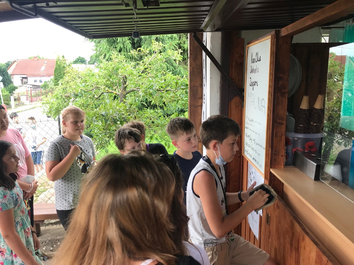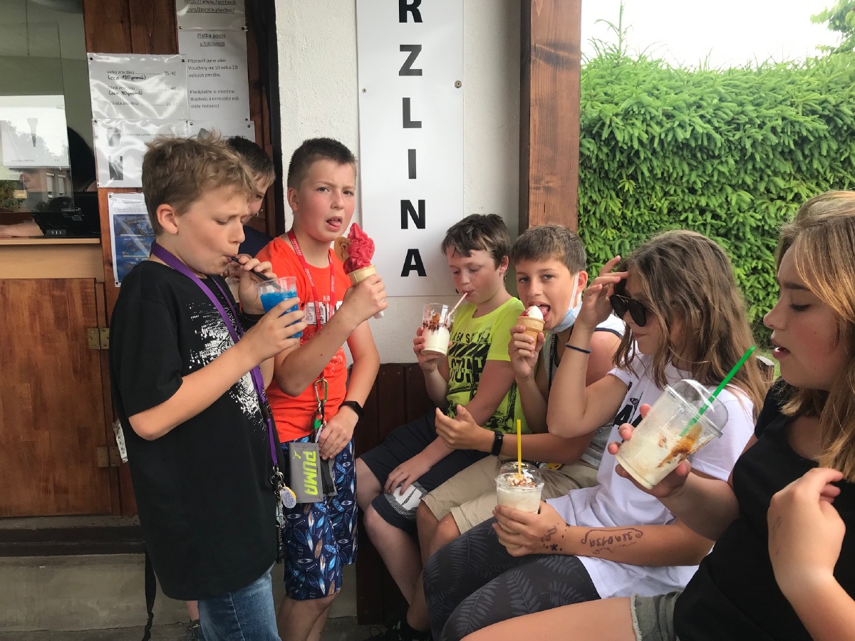 Poté jsme si vyrazili osladit den do sedleckého stánku se zmrzlinou. Pochutnali jsme si na točené zmrzlině, barevné tříšti, koktejlech, ale i na výborné ledové kávičce. I když jsme malinko "přetáhli" konec vyučování, osvěžení se nám určitě pěkně vydařilo. ![]()